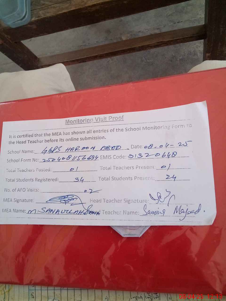 | EMIS Code: 31320648 | Name of School: GGPS HAROON ABAD | |||