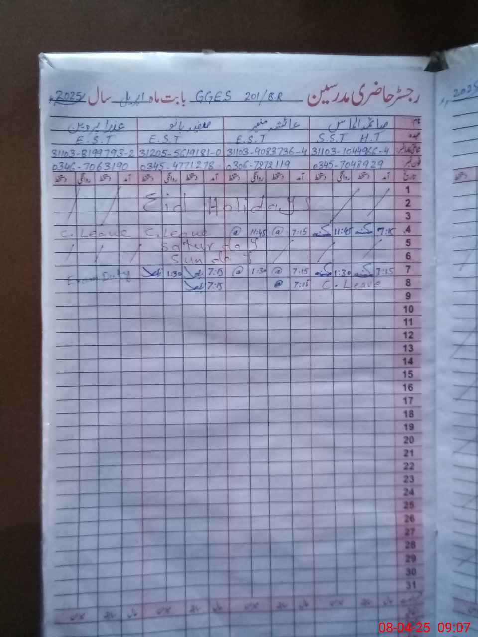 | 31**** | Az**** Pa**** | 3 | 1 | 0 | 0 | 0 | 0 | 0 | 0 | 0 | 0 | 0 | Exam Duty |