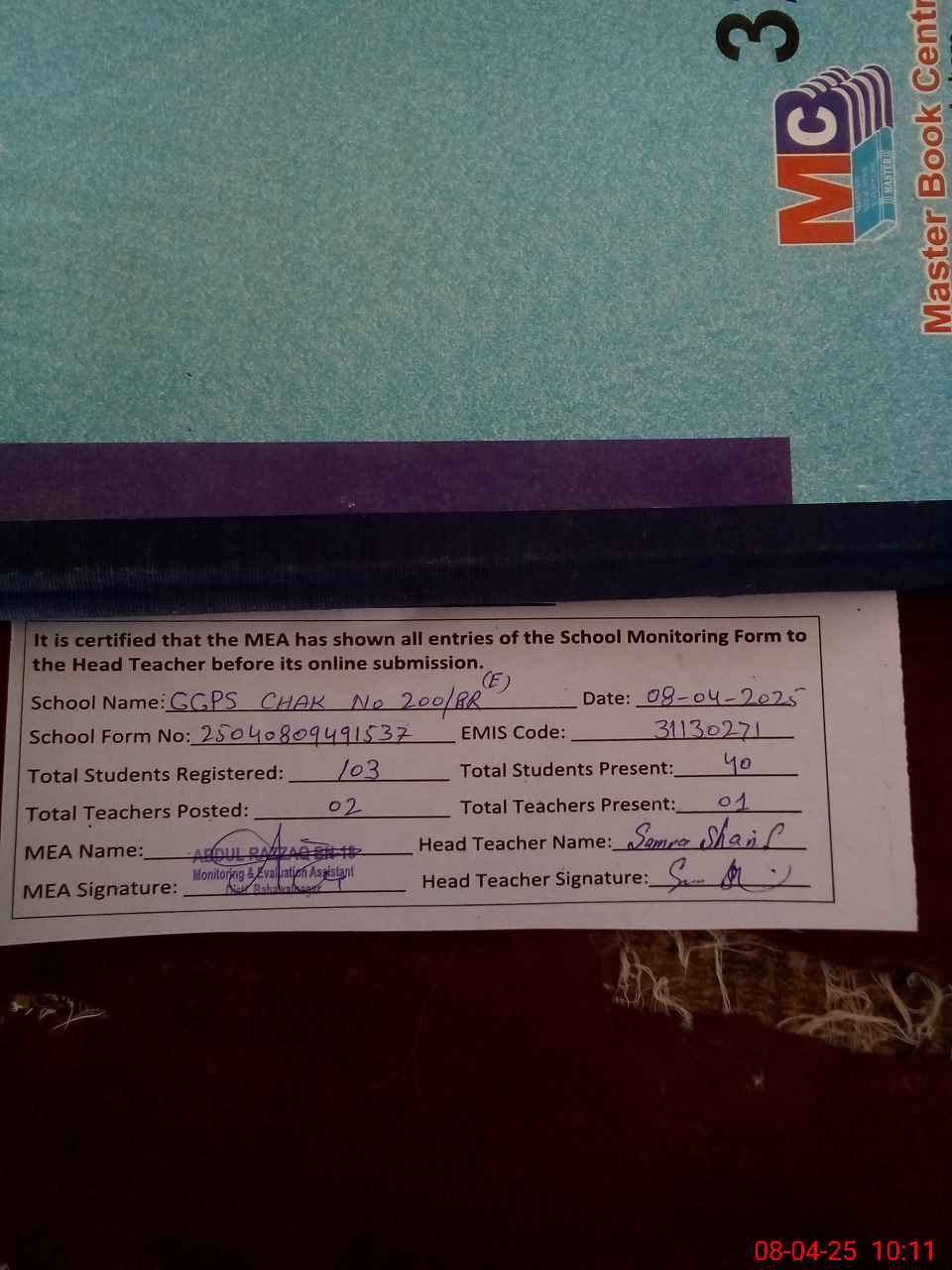| EMIS Code: 31130271 | Name of School: GGPS CHAK NO 200/8-R EAST | |||
