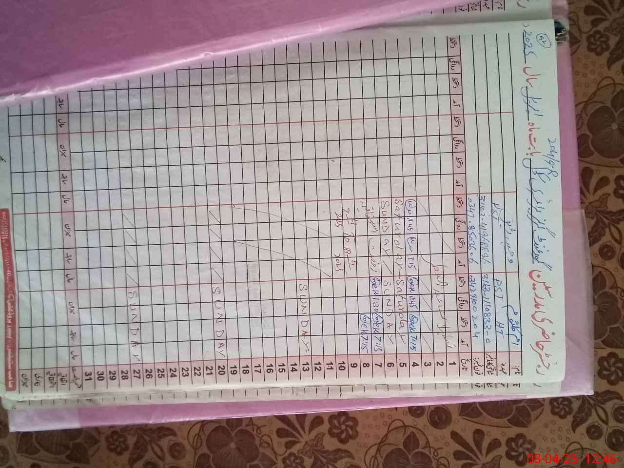 | CNIC | Full Name | Designation | R/C | Absence During Last Calender Month |