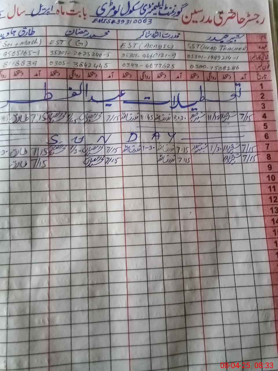 | Name: SH**** HA**** Designation: (School Headmaster's/Headmistress's) SST Phone/Cell Number: 03**** |