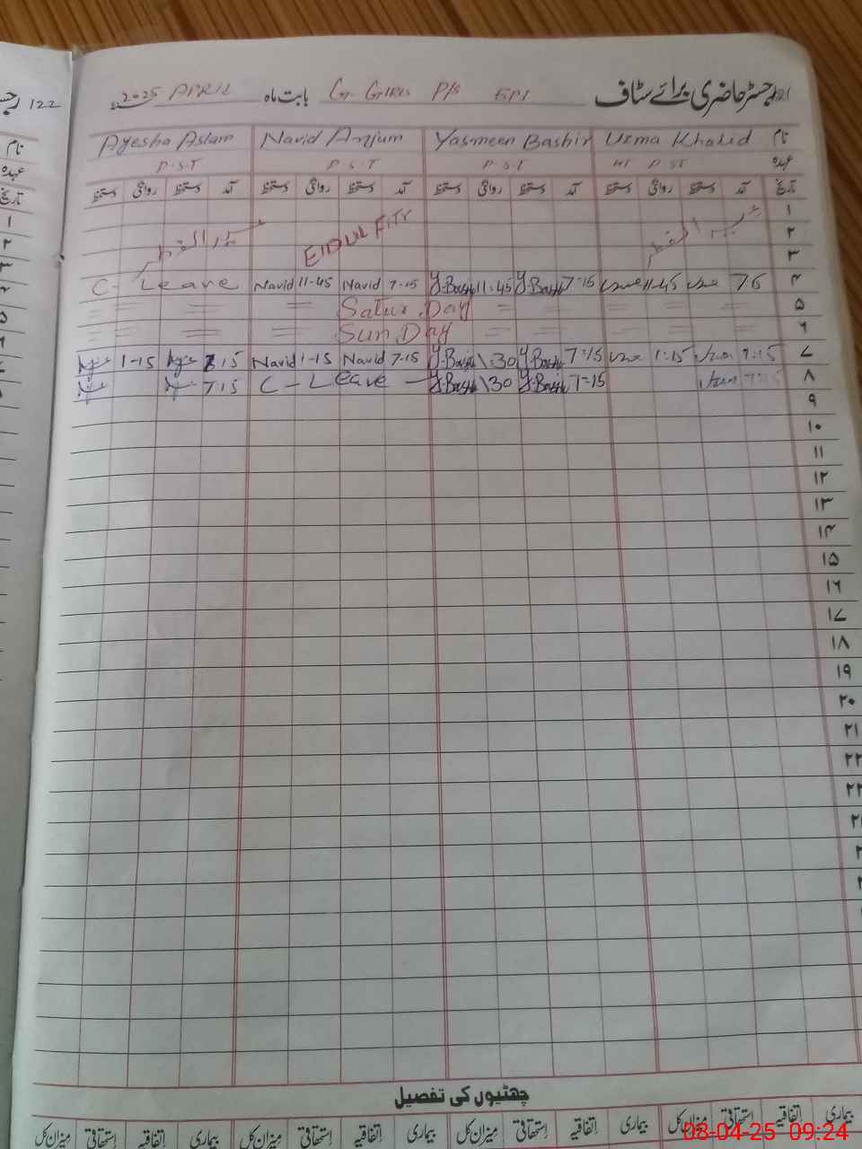 | Name: Uz**** Kh**** Designation: (School Headmaster's/Headmistress's) PST Phone/Cell Number: 03**** |