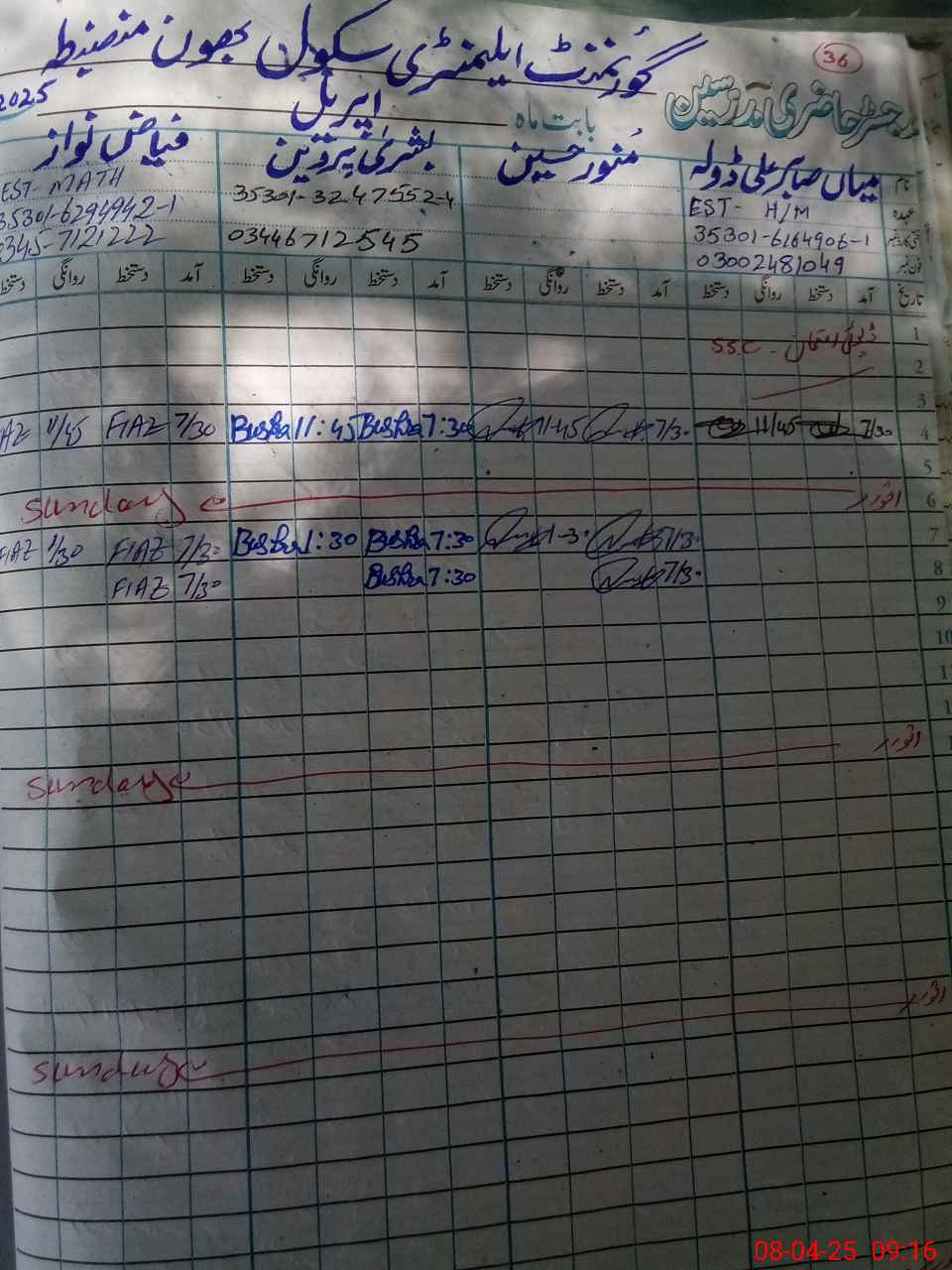 | Name: SA**** AL**** Designation: (School Headmaster's/Headmistress's) Est General Phone/Cell Number: 03**** |