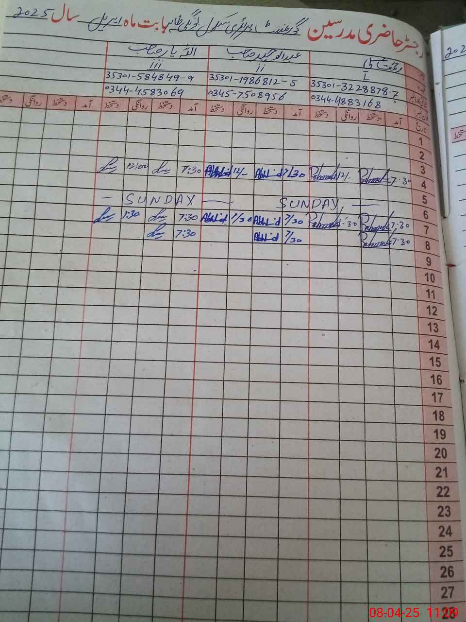 | Name: RA**** AL**** Designation: (School Headmaster's/Headmistress's) PST Phone/Cell Number: 03**** |