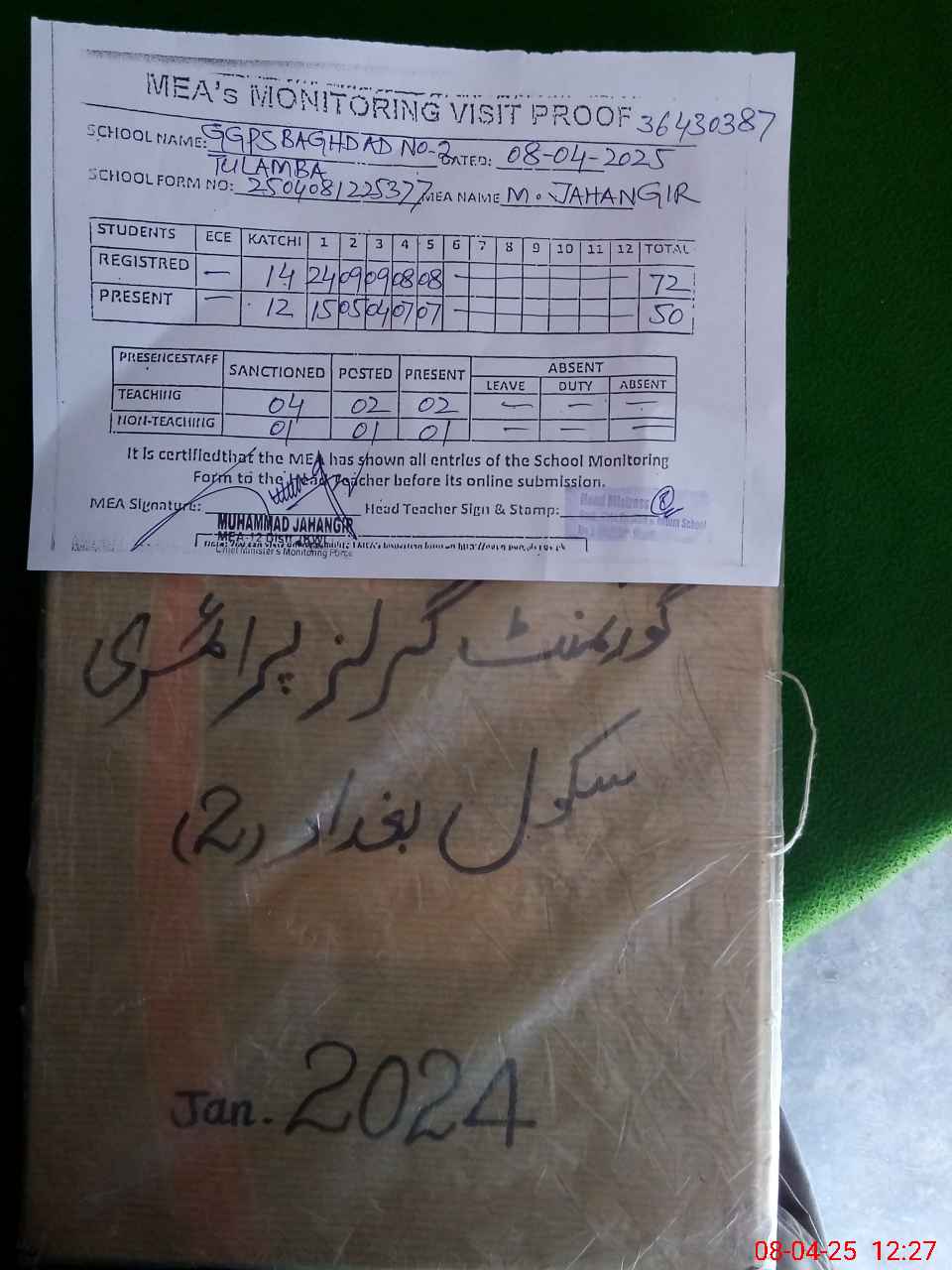 | EMIS Code: 36430387 | Name of School: GGPS BAGHDAD NO.2 TULAMBA | |||