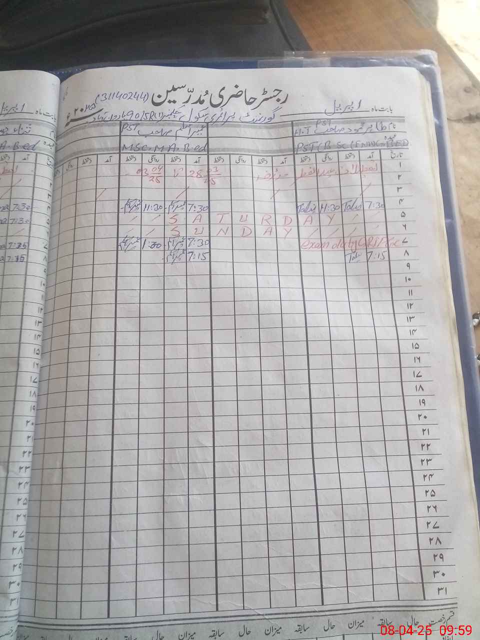 | CNIC | Full Name | Designation | R/C | Absence During Last Calender Month |