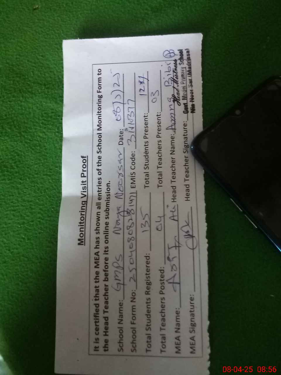 | EMIS Code: 31110377 | Name of School: GMPS NIYA NOORSAR | |||