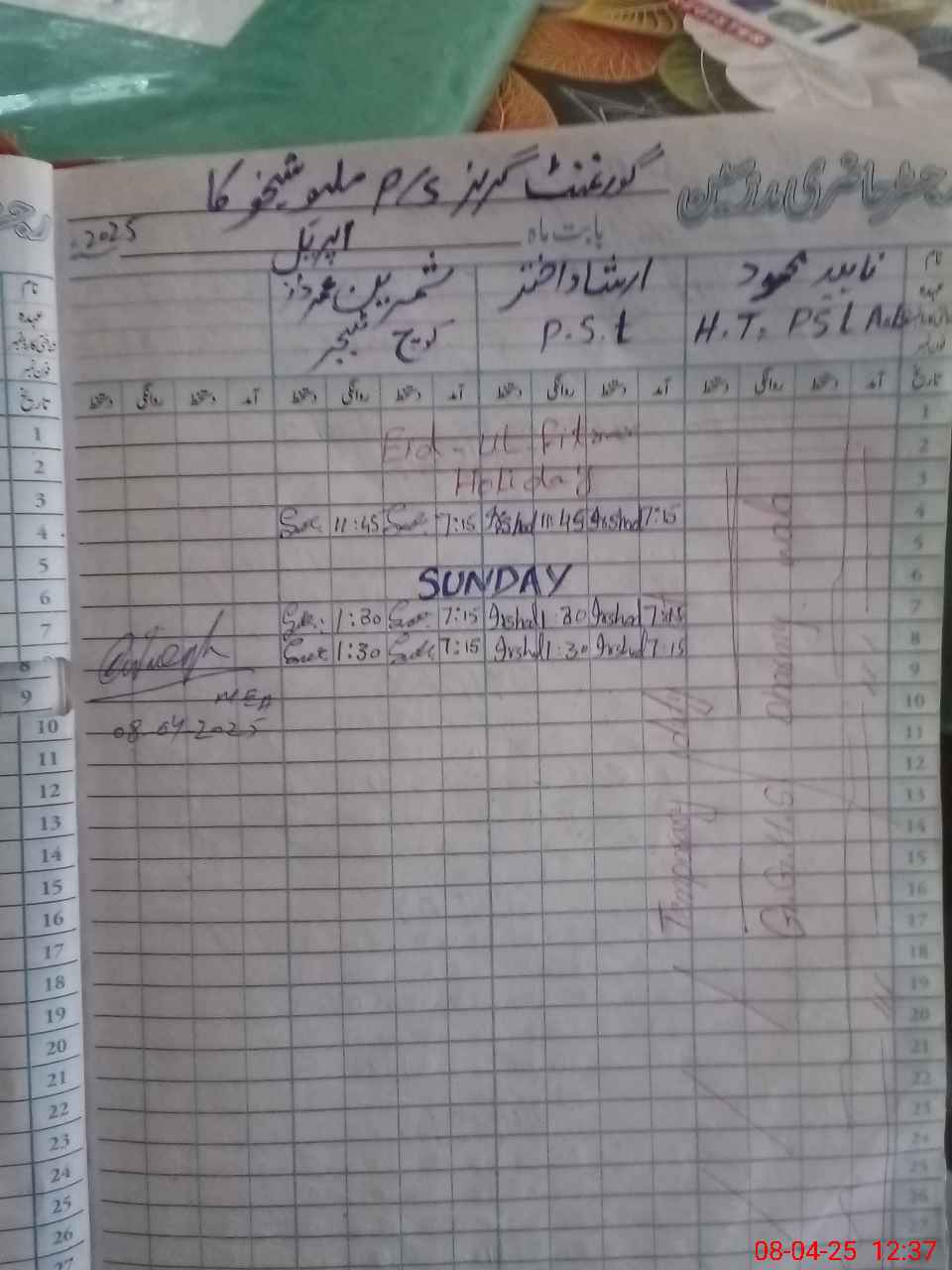 | Name: NA**** ME**** Designation: (School Headmaster's/Headmistress's) PST Phone/Cell Number: 03**** |