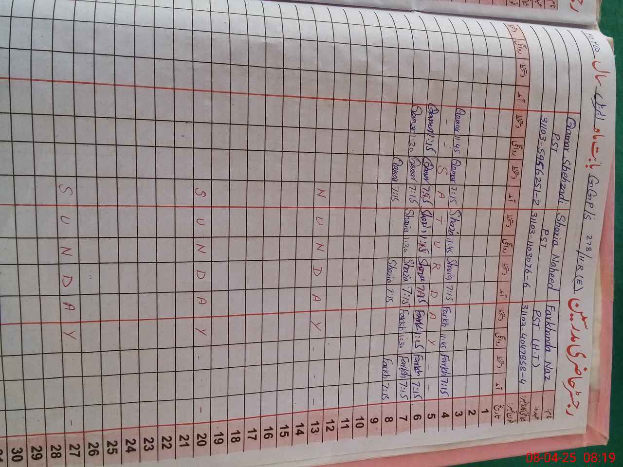 | Name: Fa**** Na**** Designation: (School Headmaster's/Headmistress's) PST Phone/Cell Number: 03**** |