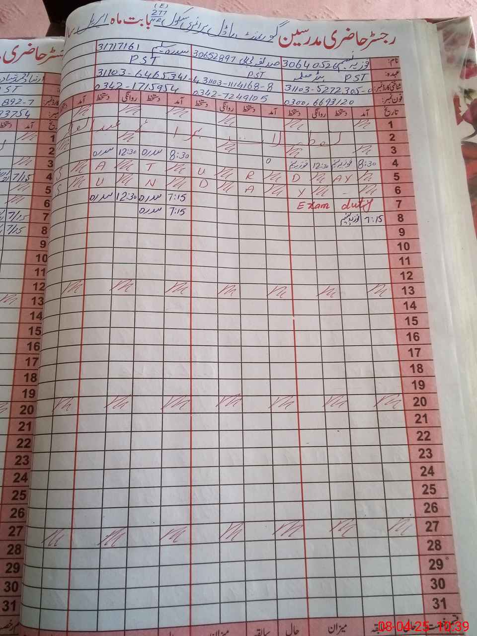 | Leave | Duty | Absent | Maternity | Medical | Ex- Pak |