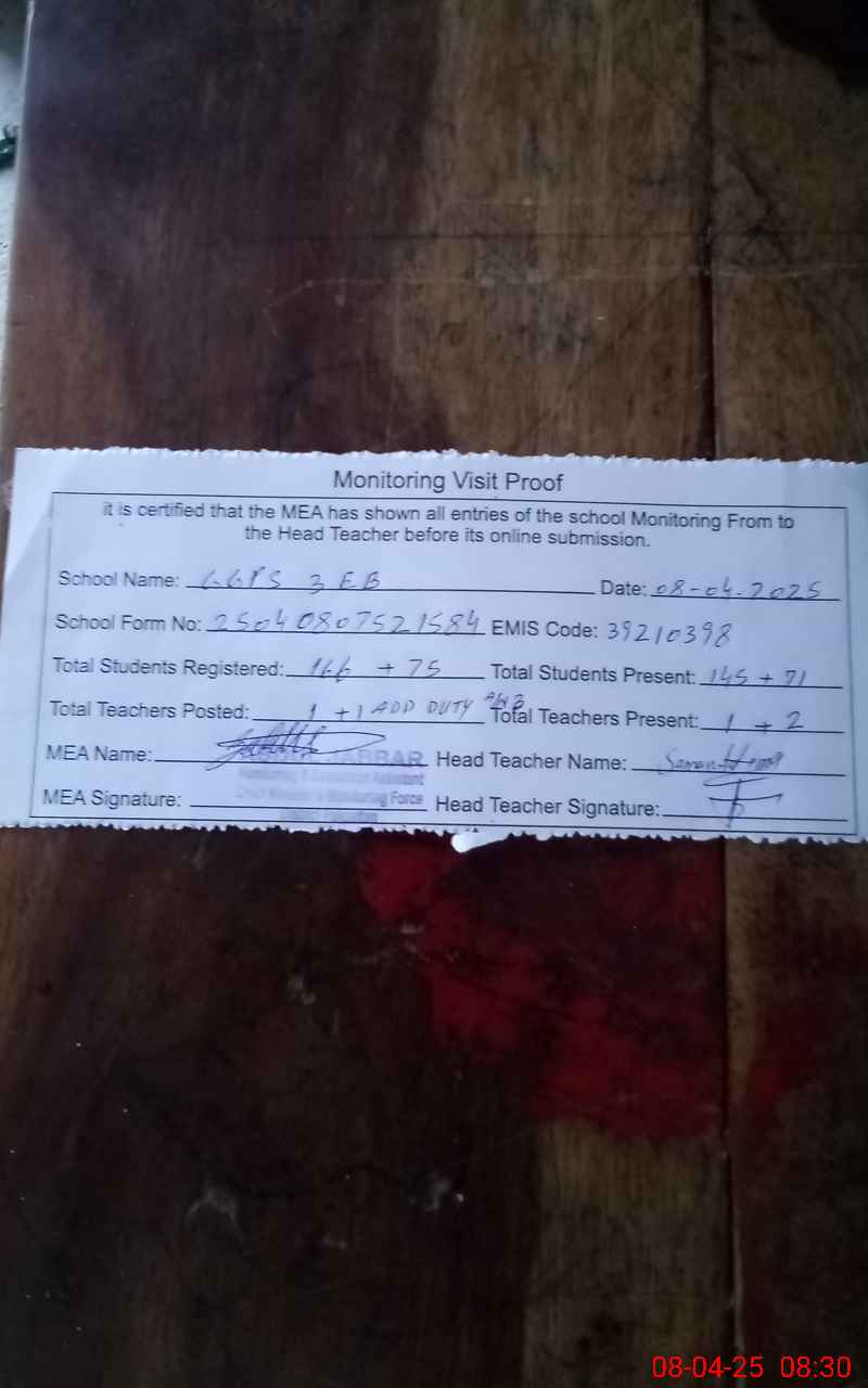 | Attendance Register | Head Teacher | MEA with School | Visit Proof |