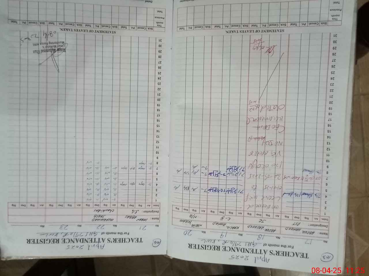 | CNIC | Full Name | Designation | R/C | Absence During Last Calender Month |