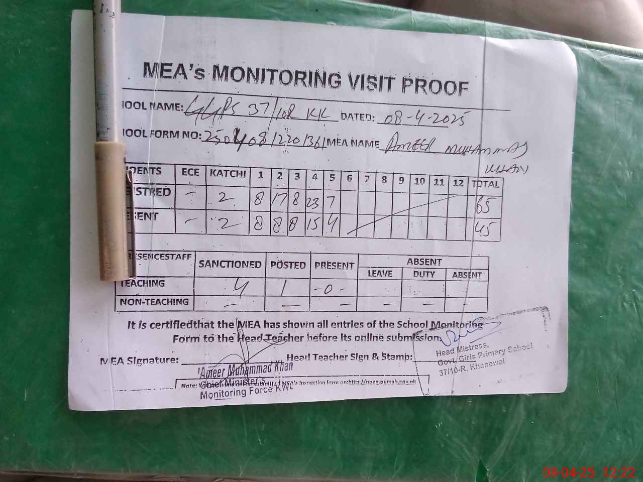 | EMIS Code: 36420440 | Name of School: GGPS 37/10-R, KACHA KHUH | |||