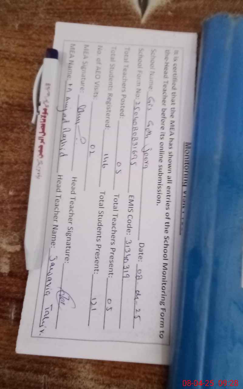 | EMIS Code: 31340319 | Name of School: GPS GOTH JOORA | |||