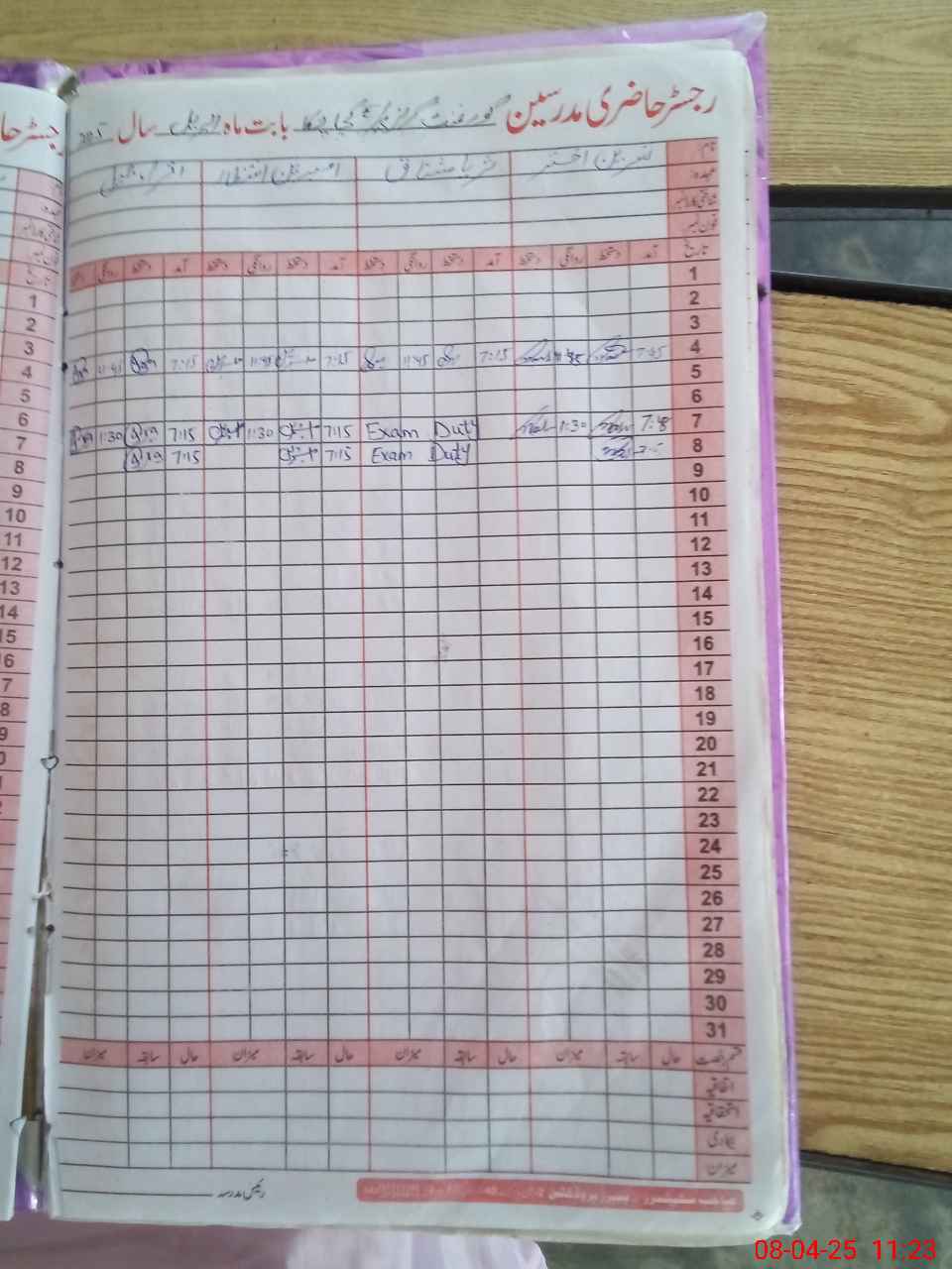 | 35**** | Su**** Mu**** | Regular | 0 | 1 | 0 | 0 | 0 | 0 | 0 | 0 | 0 | Exam Duty | |