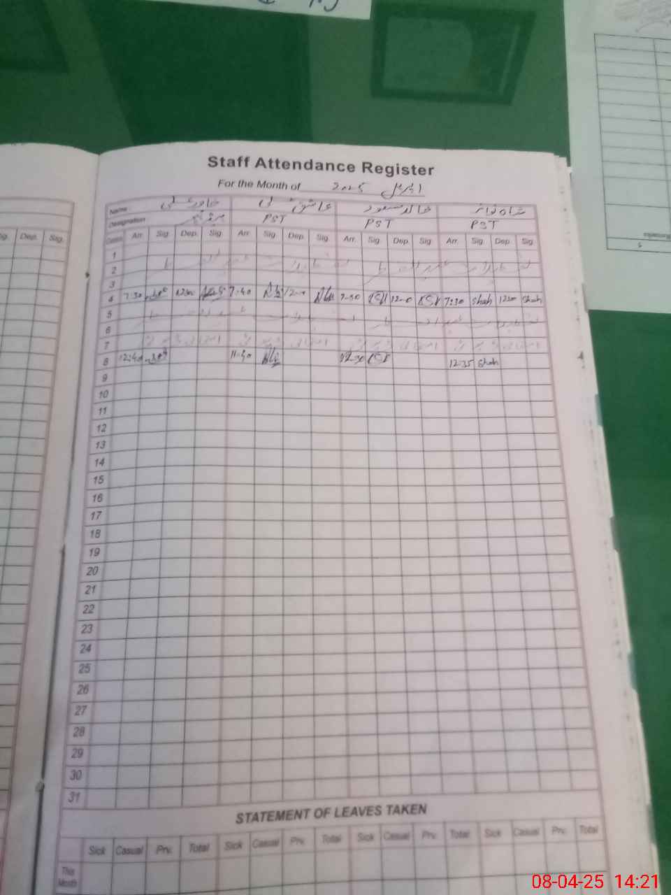 | 34**** | Sh**** Yo**** | PST | Regular | 0 | 0 | 0 | 0 | 0 | 0 | 0 | 0 | 0 | Exam Duty |