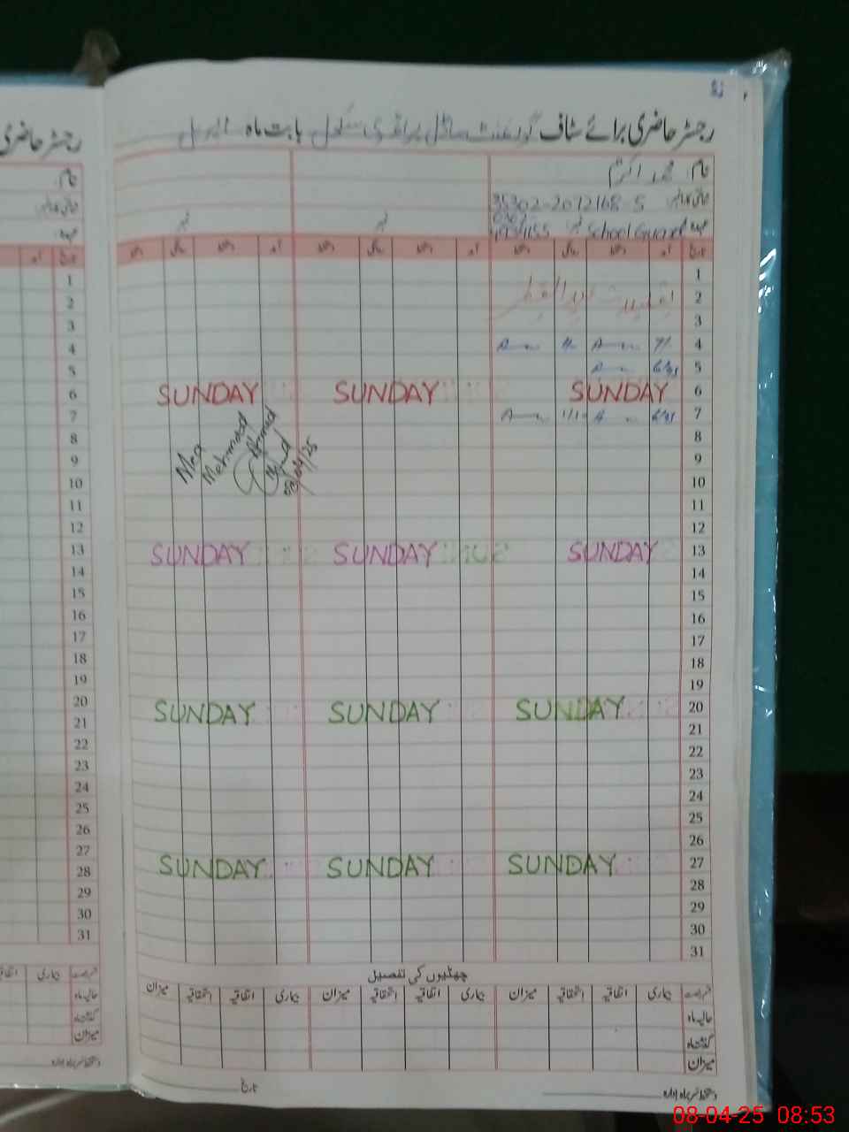 | Name: GH**** FA**** Designation: (School Headmaster's/Headmistress's) PST/PTC/JV Phone/Cell Number: 03**** |