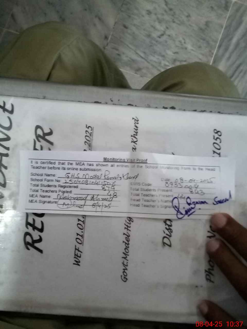 | EMIS Code: 39330014 | Name of School: GHS MODEL RENALA KHURD | |||