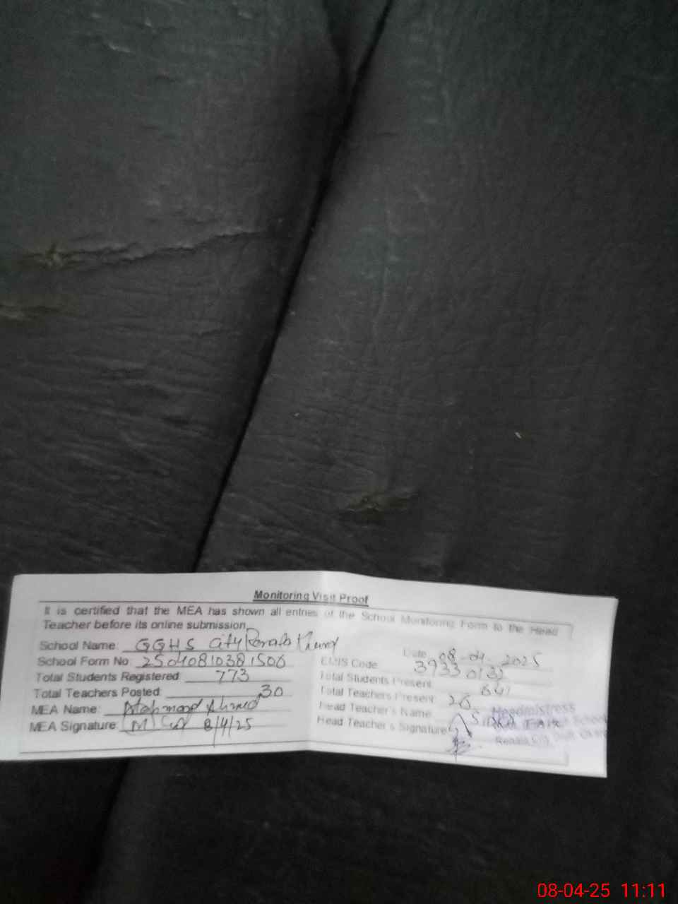 | Certified that this School was Inspected by the Undersigned MEA/DMO Today and the Information Stated Above is as Per Record. | |||||