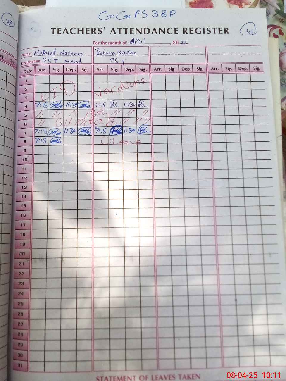 | Name: MU**** NA**** Designation: (School Headmaster's/Headmistress's) PST Phone/Cell Number: 03**** |