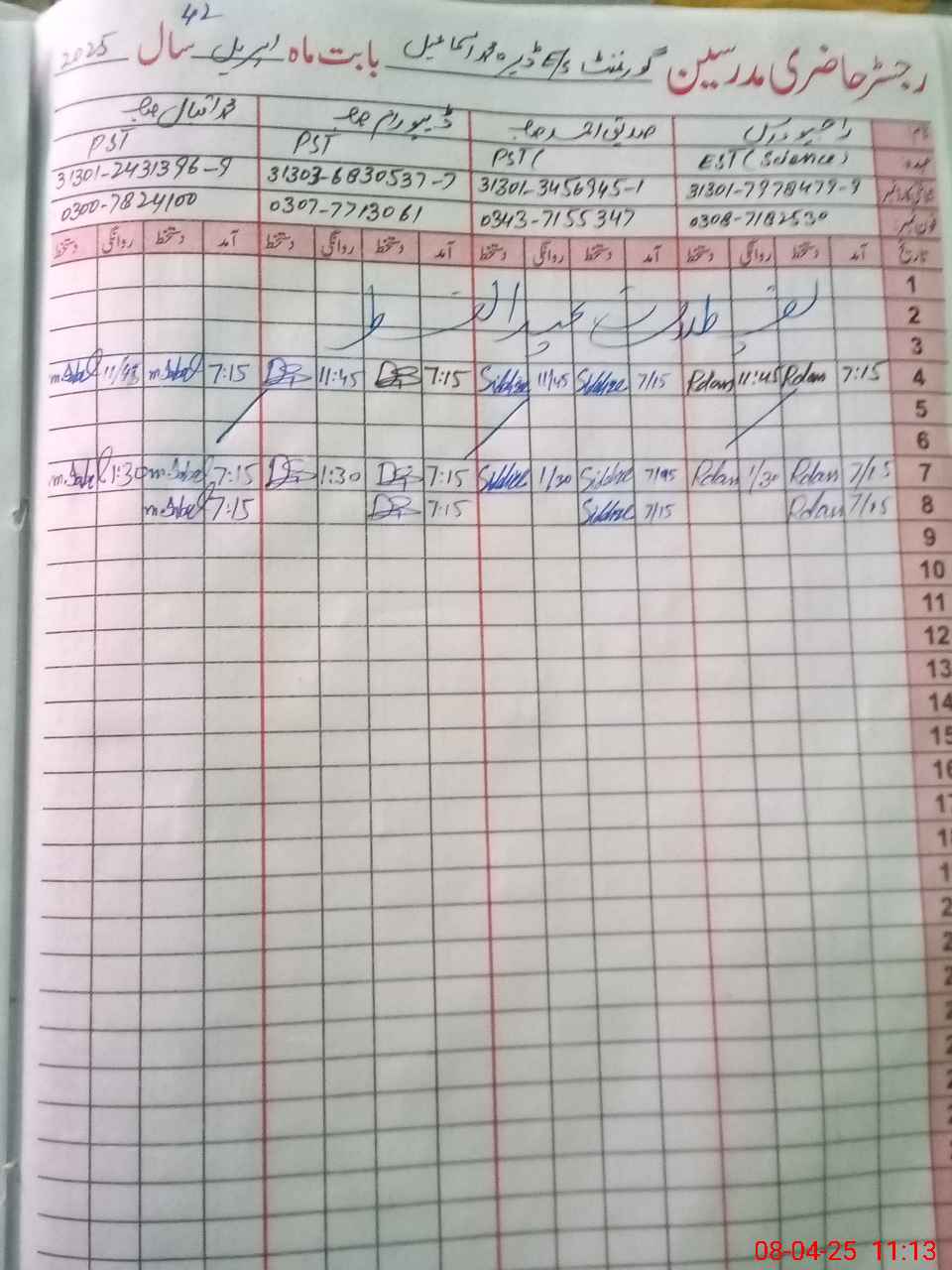| CNIC | Full Name | Designation | R/C | Absence During Last Calender Month |