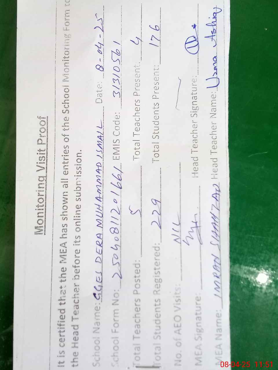 | EMIS Code: 31310561 | Name of School: GGES DERA MUHAMMAD ISMAIL | |||