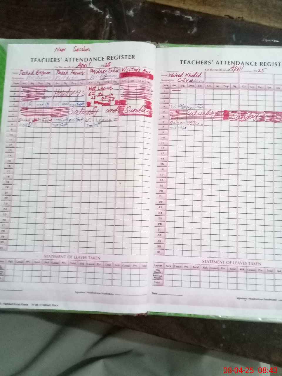 | Leave | Duty | Absent | Maternity | Medical | Ex- Pak |