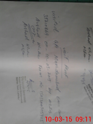 | Monitoring Date: 10-03-2015 | Start Time: 10-03-2015 08:54 AM | End Time: 10-03-2015 09:25 AM | Name of MEA: MU**** AR**** | |