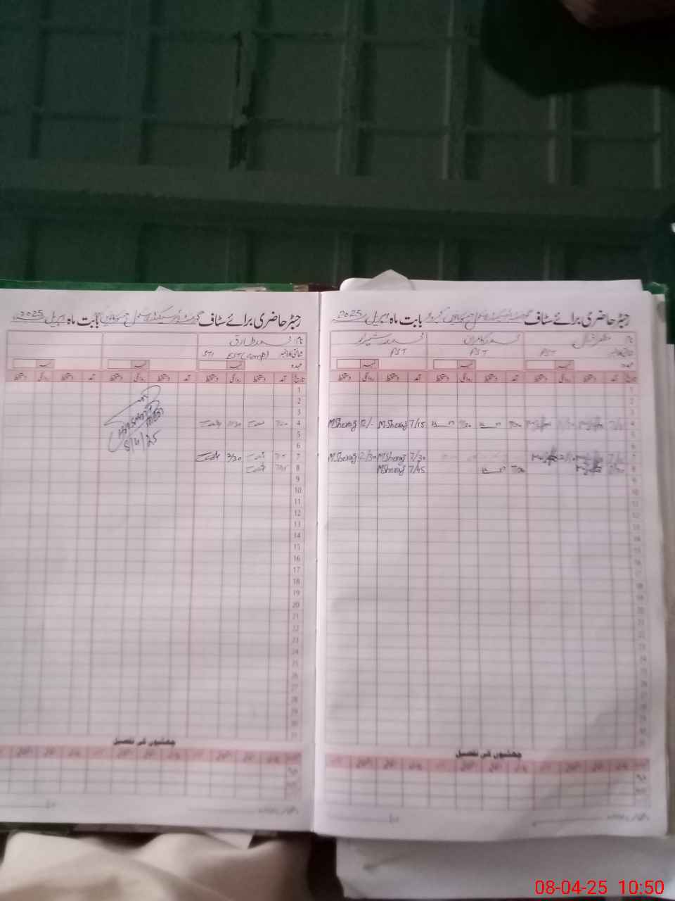 | CNIC | Full Name | Designation | R/C | Absence During Last Calender Month |