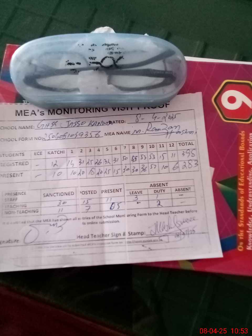 | Attendance Register | Head Teacher | MEA with School | Visit Proof |