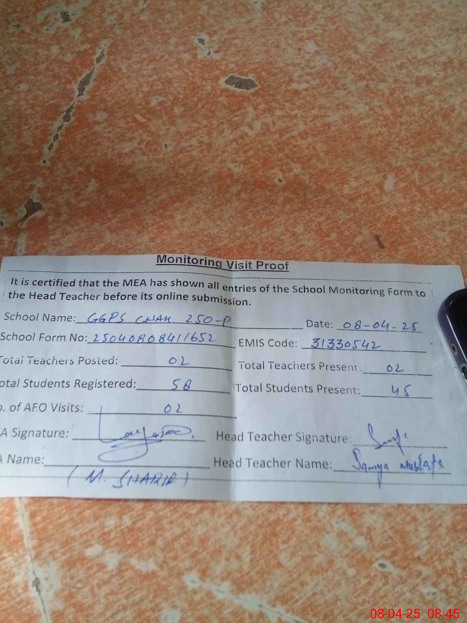 | EMIS Code: 31330542 | Name of School: GGPS CHAK 250/P | |||