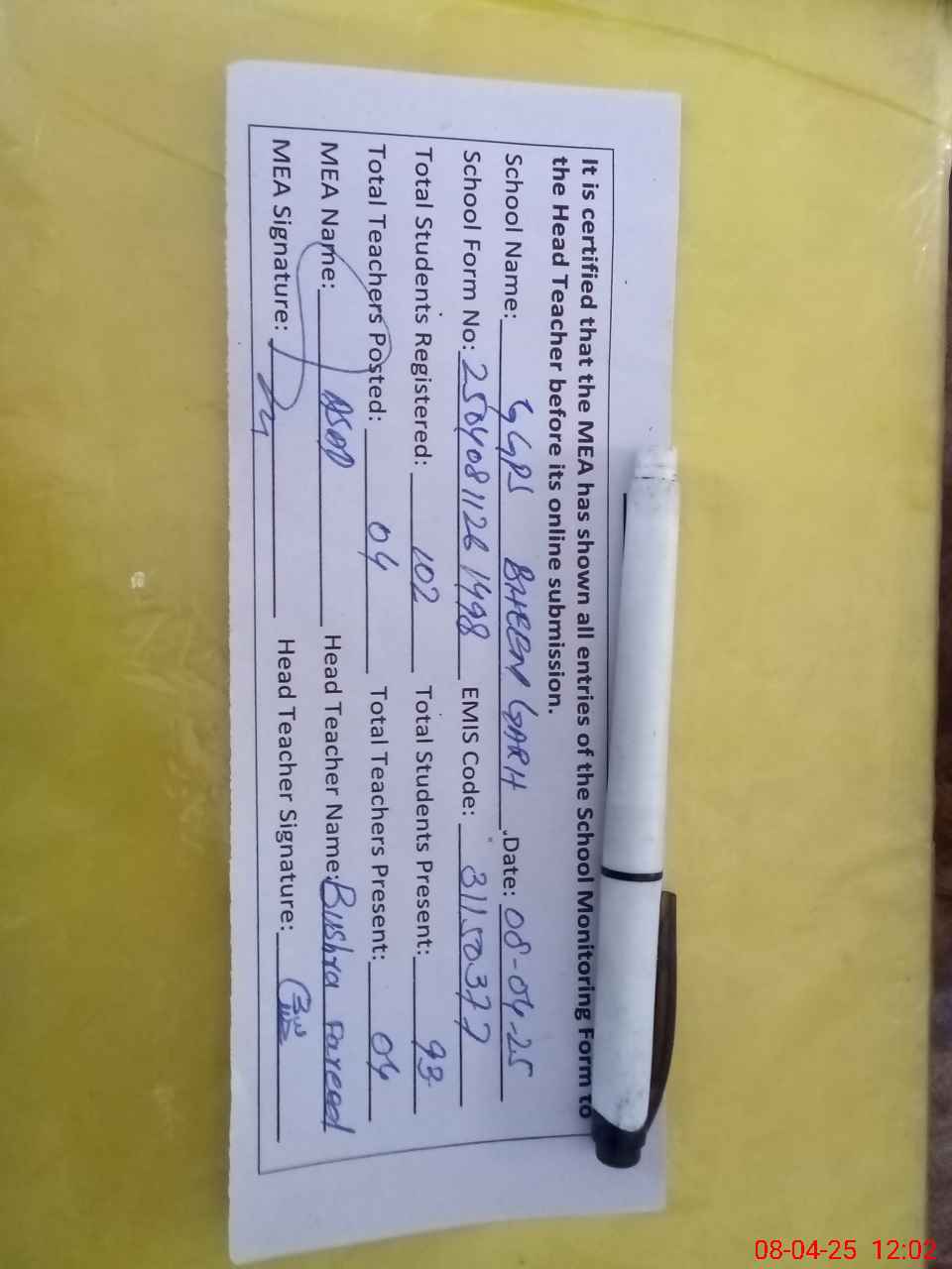 | EMIS Code: 31150377 | Name of School: GGPS BHEEM GARH | |||