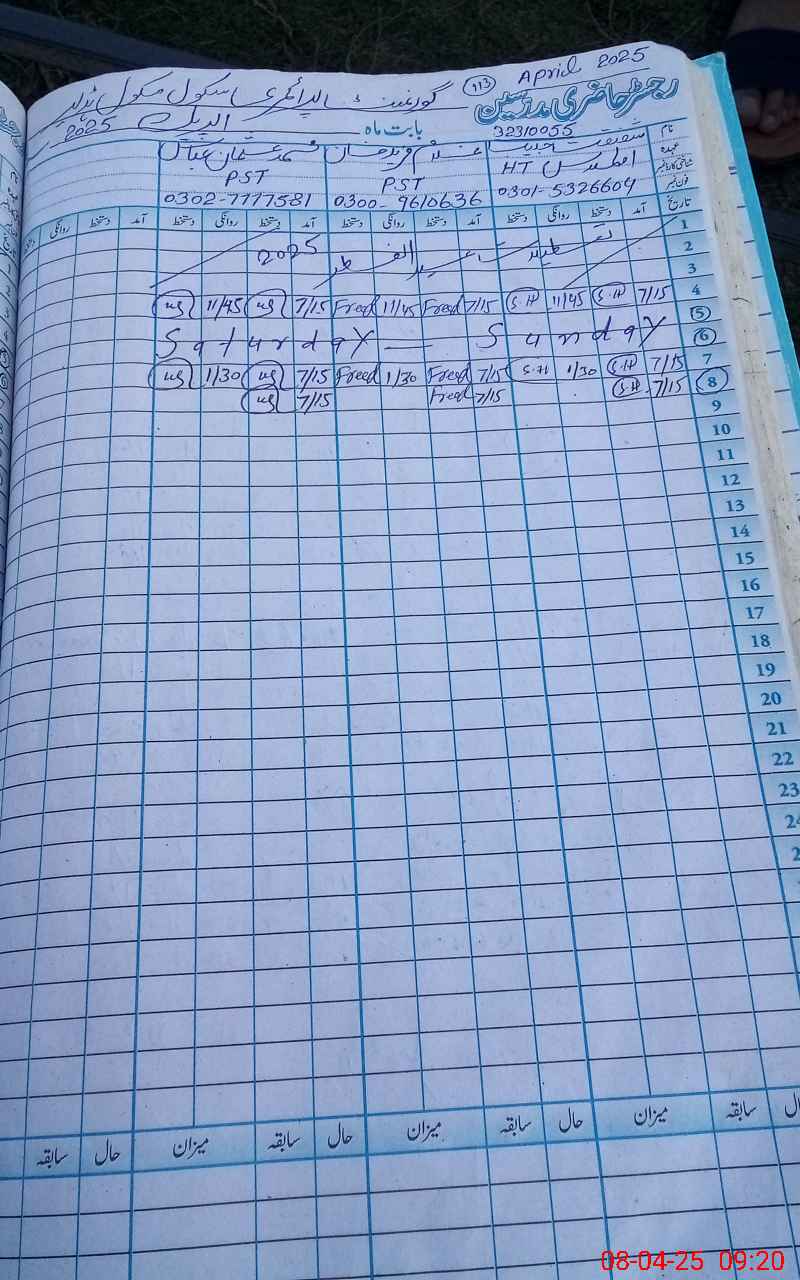 | Name: Sh**** Ha**** Designation: (School Headmaster's/Headmistress's) PST Phone/Cell Number: 03**** |