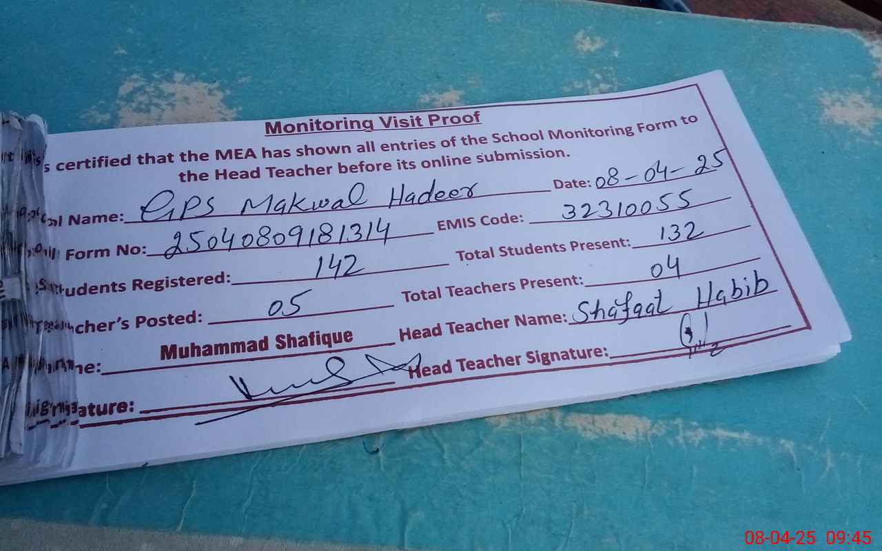 | EMIS Code: 32310055 | Name of School: GPS MAKWAL HADEER | |||