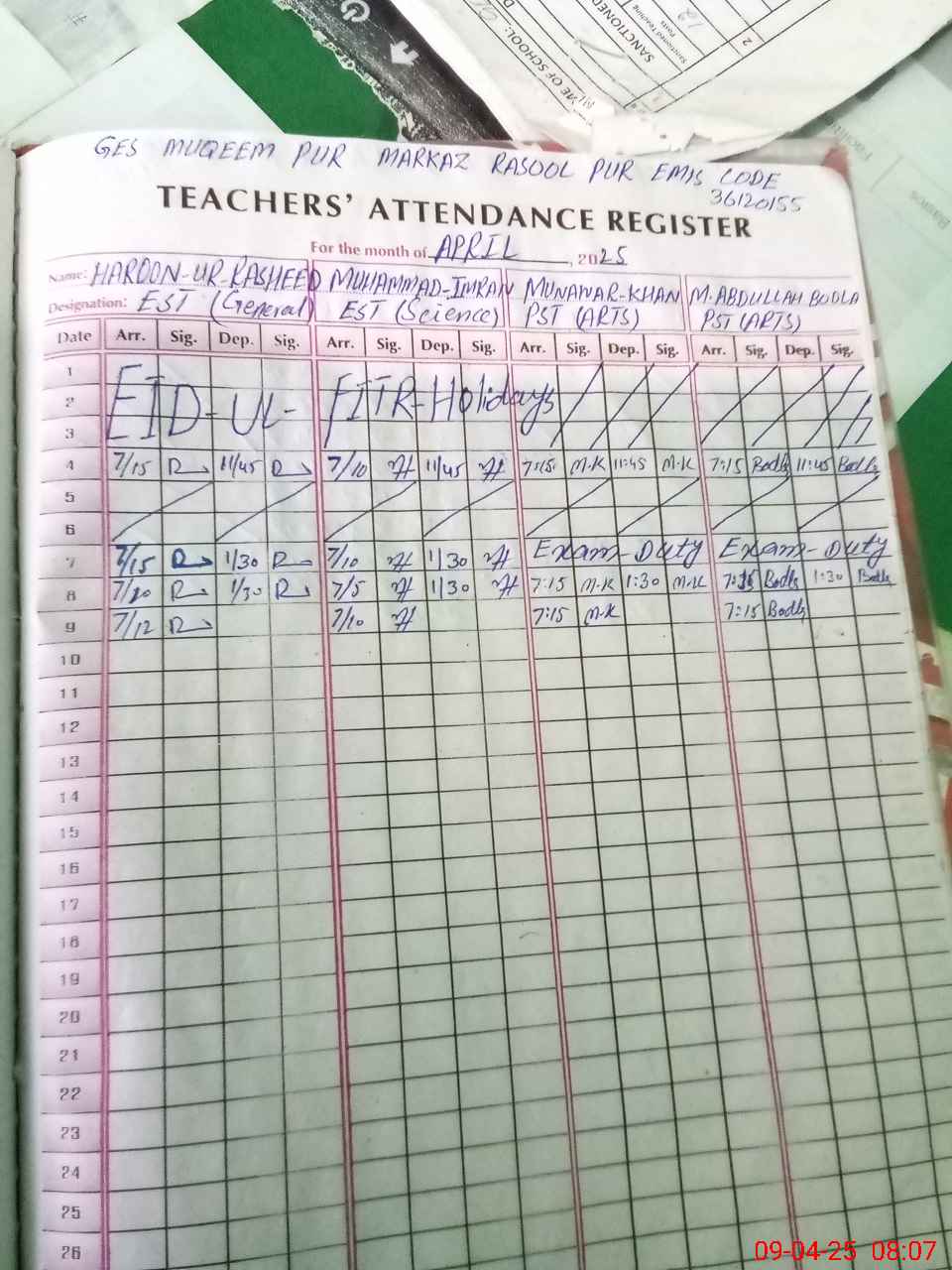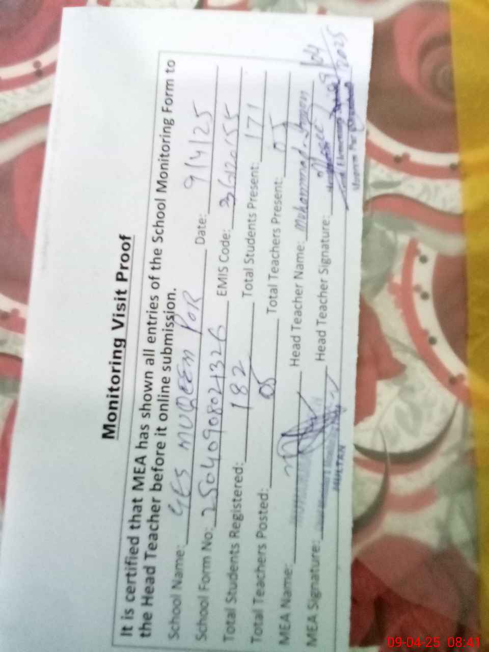 | EMIS Code: 36120155 | Name of School: GES MUQEEM PUR P/O MATOTLI SHUJABAD | |||