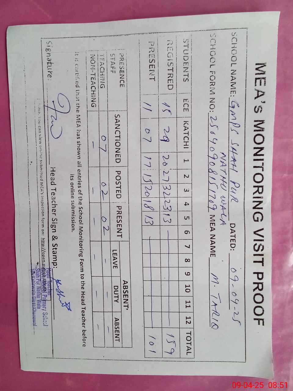 | EMIS Code: 36410368 | Name of School: GMES SHAH PUR NATHU, P/O HAJI PUR NATHU, KABIRWALA | |||