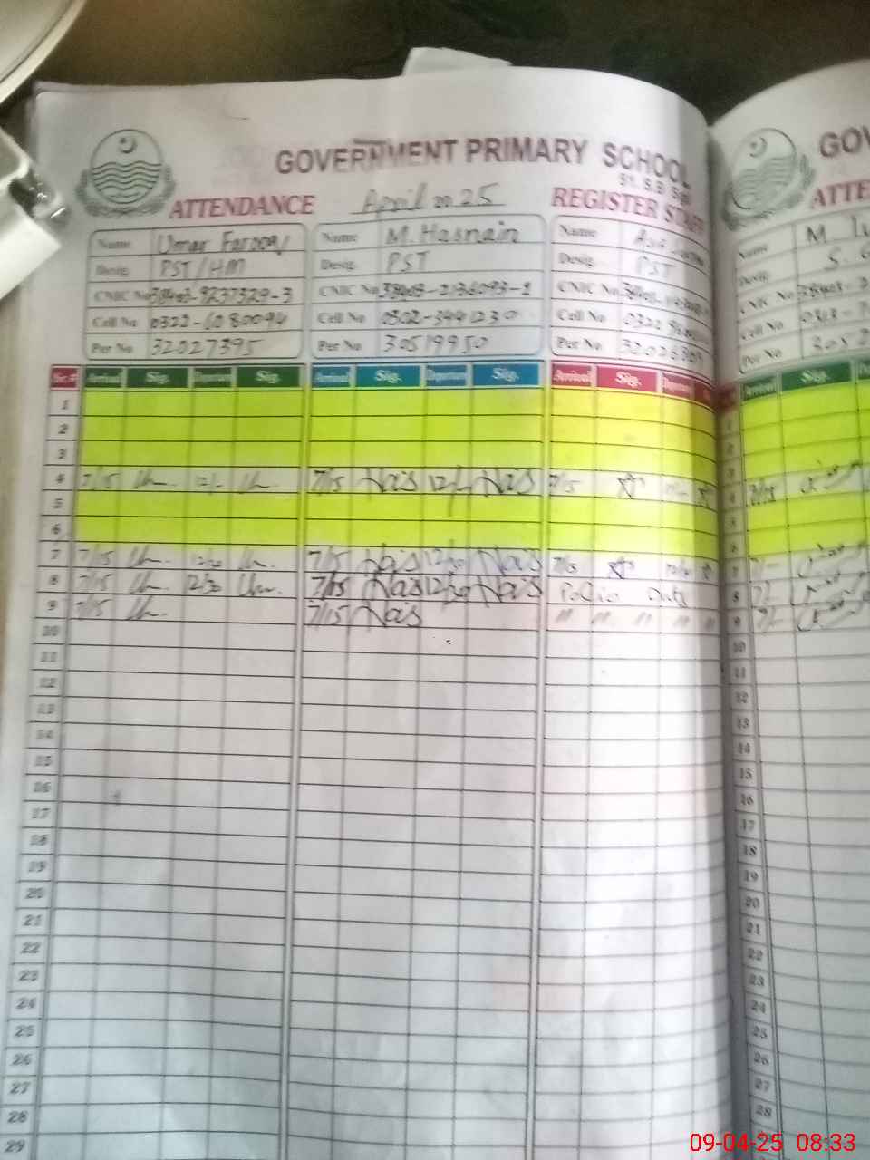 | CNIC | Full Name | Designation | R/C | Absence During Last Calender Month |