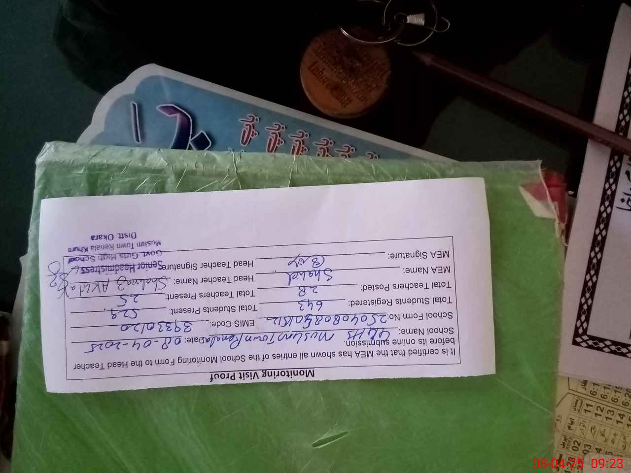 | EMIS Code: 39330120 | Name of School: GGHS MC MUSLIM TOWN RENALA KHURD | |||
