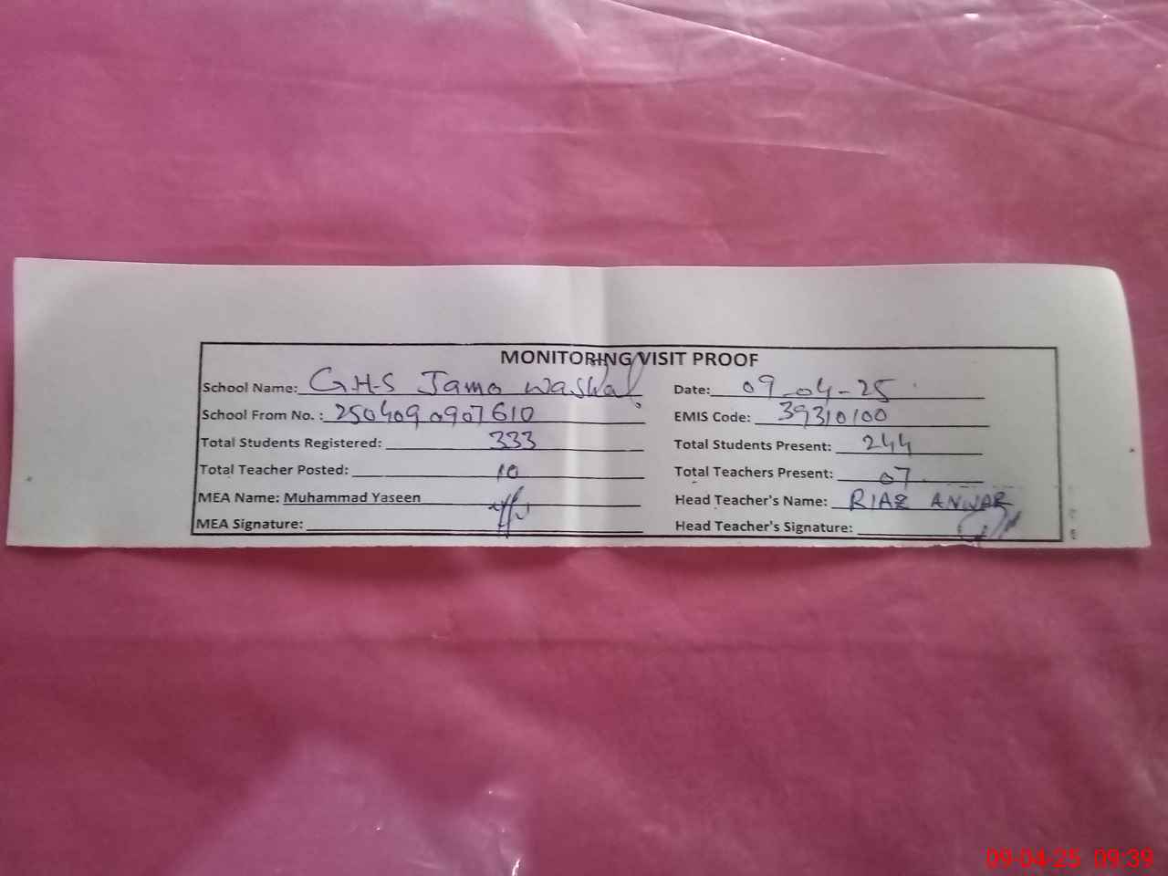 | EMIS Code: 39310100 | Name of School: GHS JAMO WACHAL | |||