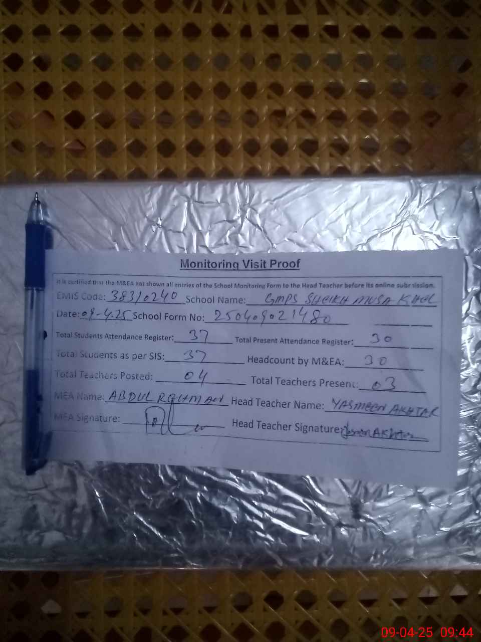 | EMIS Code: 38310240 | Name of School: GMPS SHEIKH MUSA KHEL | |||