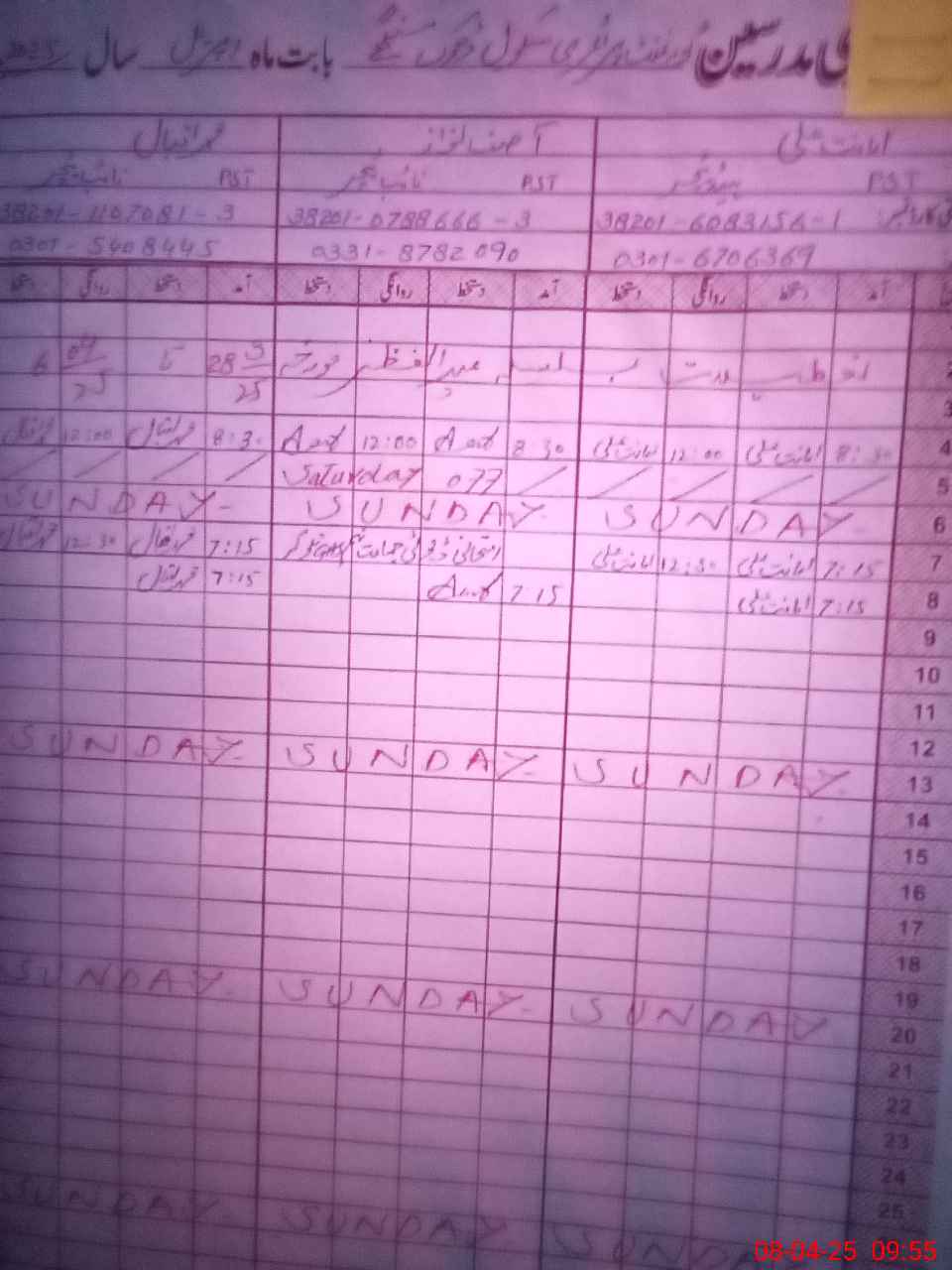 | CNIC | Full Name | Designation | R/C | Absence During Last Calender Month |