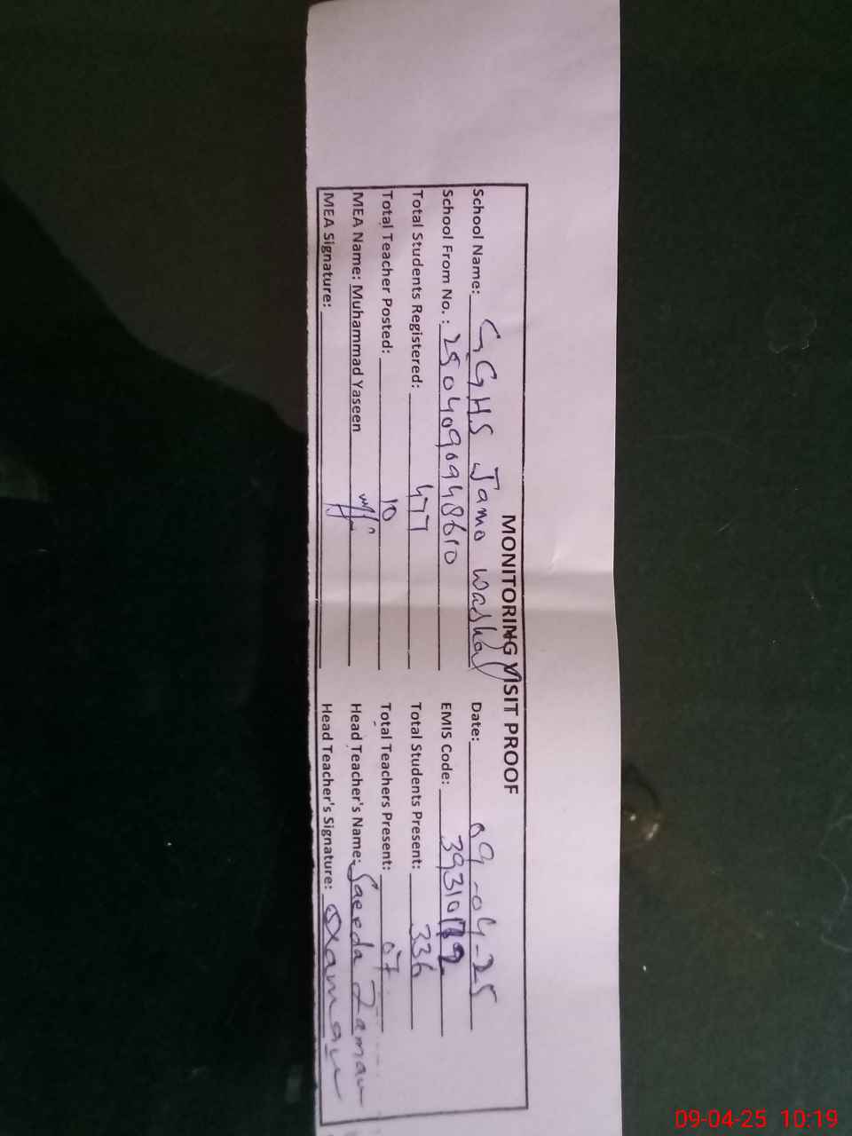 | EMIS Code: 39310172 | Name of School: GGHS JAMO WACHAL | |||