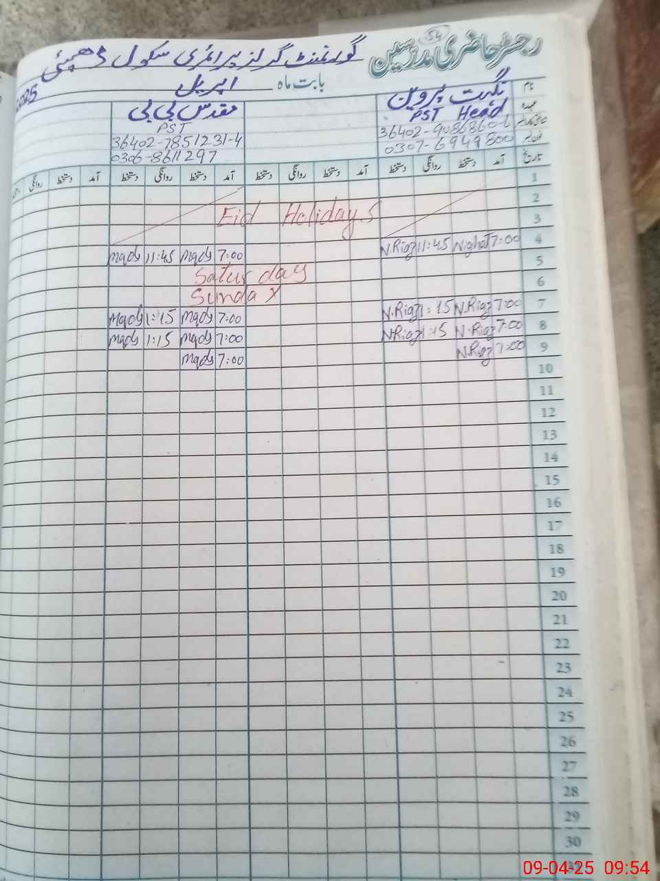 | Name: Sa**** Mu**** Designation: (School Headmaster's/Headmistress's) PST Phone/Cell Number: 03**** |