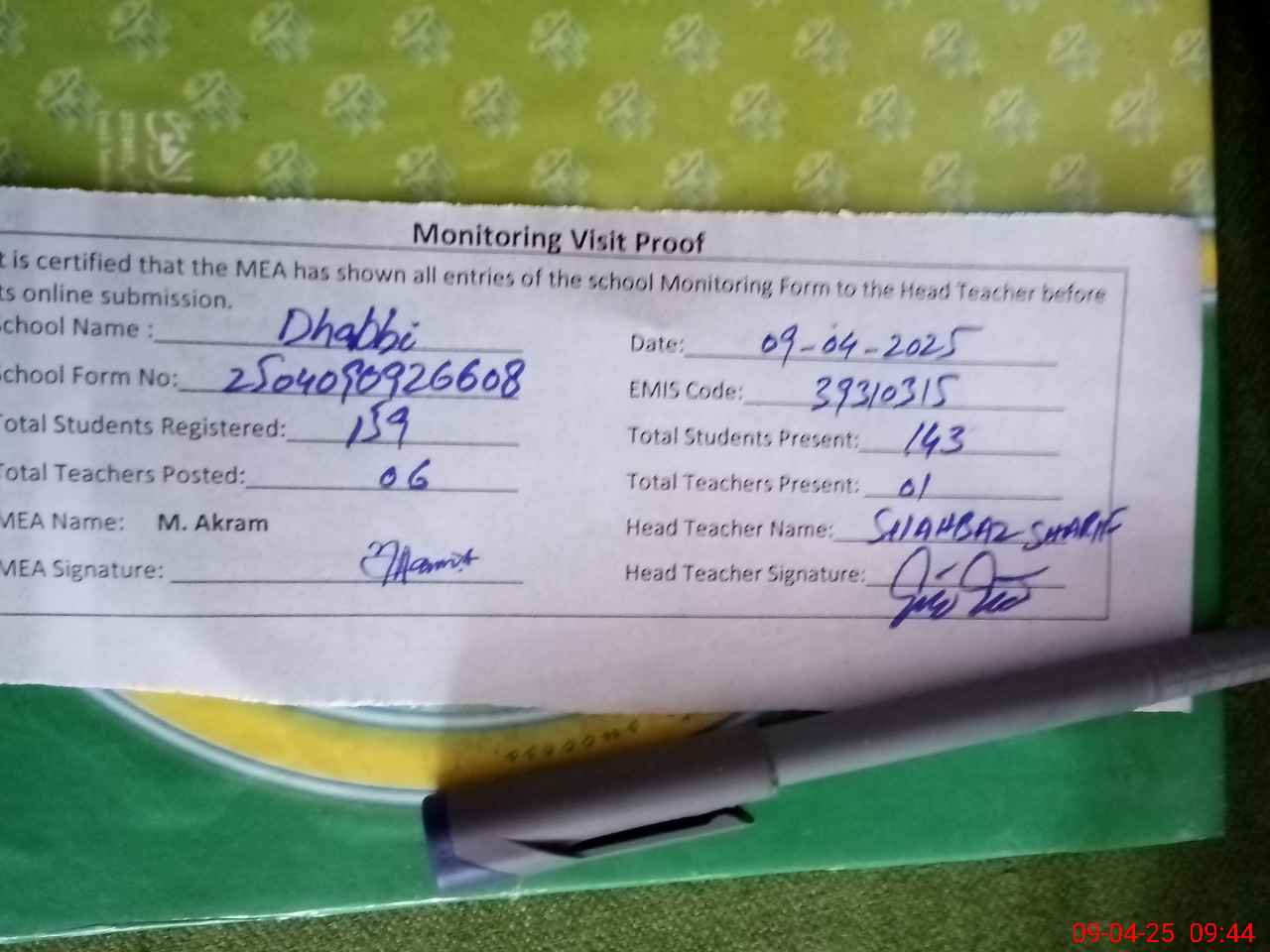 | EMIS Code: 39310315 | Name of School: GPS DHABBI | |||