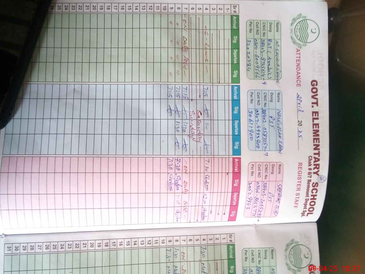 | Name: Zu**** Al**** Designation: (School Headmaster's/Headmistress's) Incharge Phone/Cell Number: 03**** |