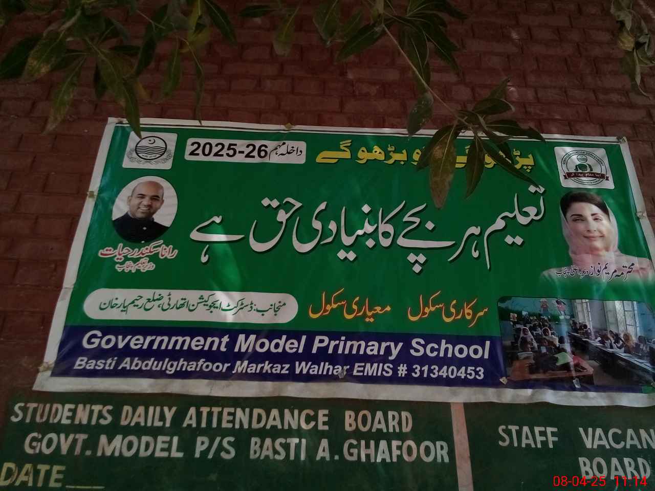 | District: RAHIMYAR KHAN | Tehsil: SADIQABAD | Markaz: WALHAR-FEMALE | Level: Primary | |