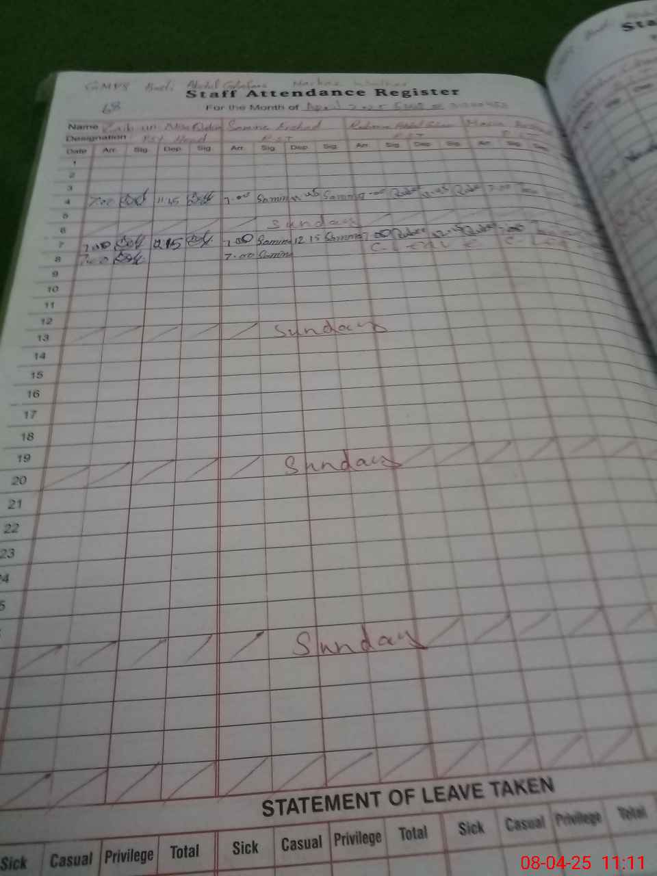 | 31**** | Ru**** Ab**** | PST | Regular | 2 | 0 | 0 | 0 | 0 | 0 | 0 | 0 | 2 | Casual |