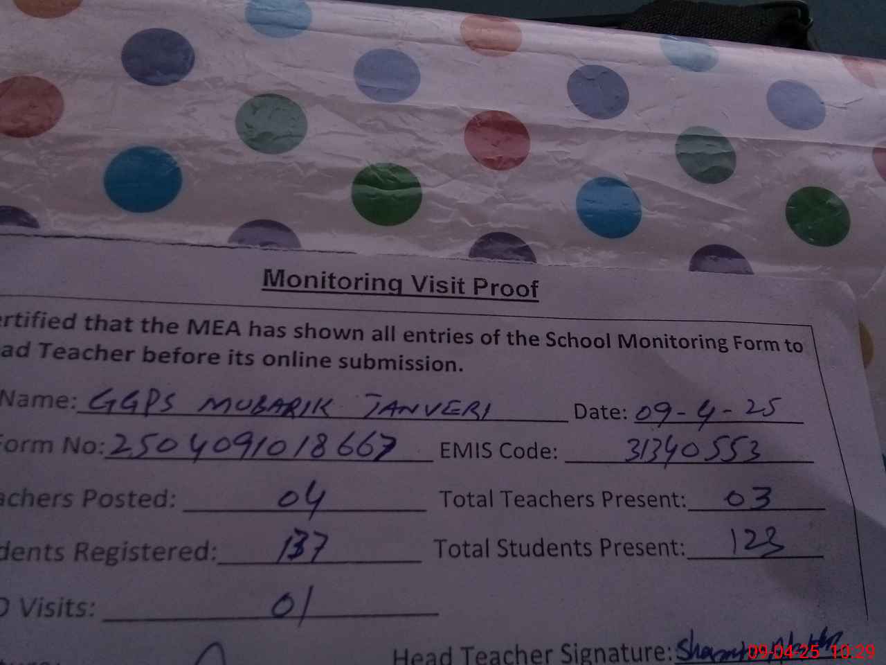 | EMIS Code: 31340553 | Name of School: GGPS MUBARAK TANWERI | |||