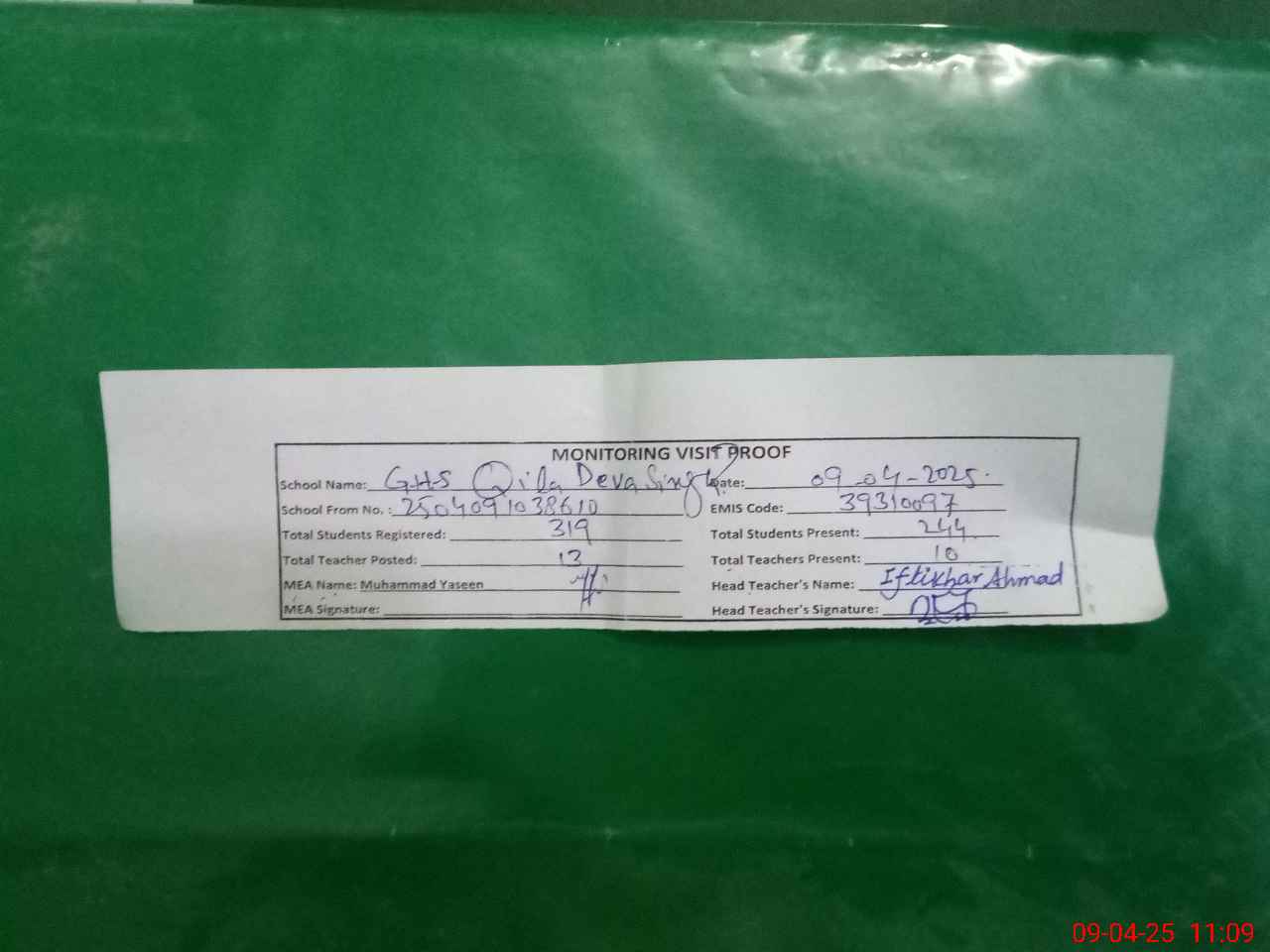 | EMIS Code: 39310097 | Name of School: GHS DEVA SINGH | |||
