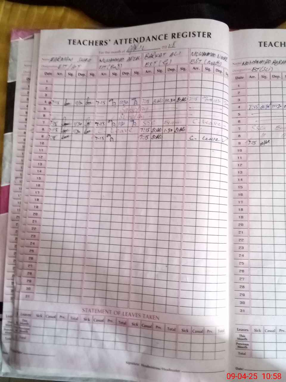 | CNIC | Full Name | Designation | R/C | Absence During Last Calender Month |
